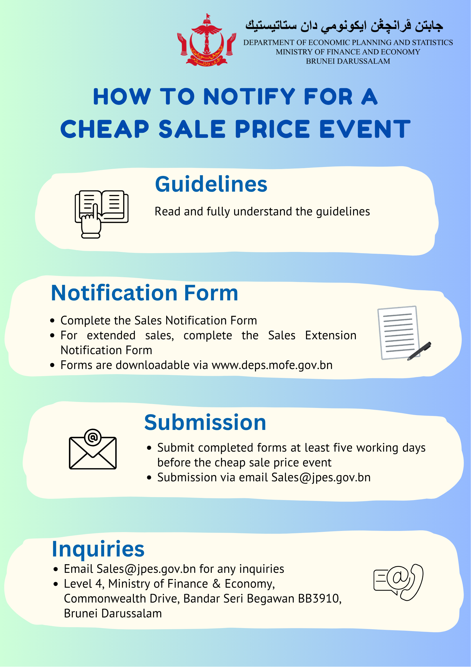 The Cheap Sale Price Regulations ensures accurate and fair cheap sale price activities. Businesses that wish to conduct a cheap sale price event should notify the Department of Consumer Affairs.