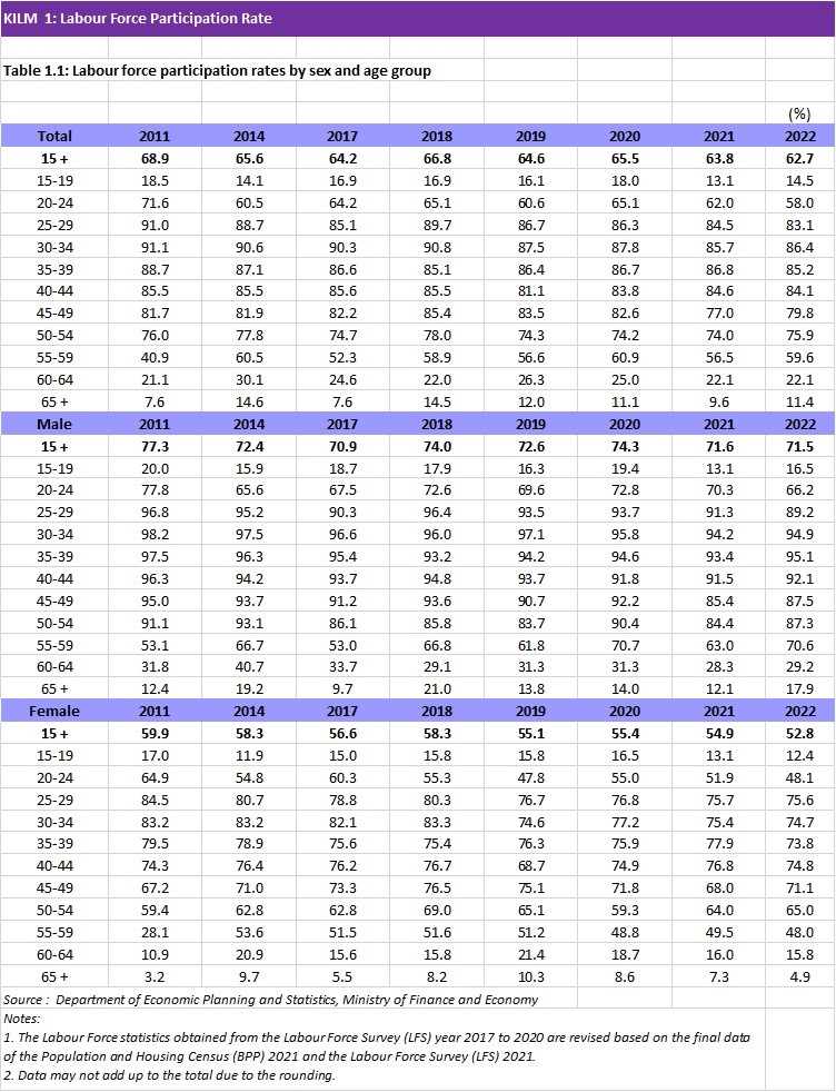 KILM 1: Labour Force Participation Rate