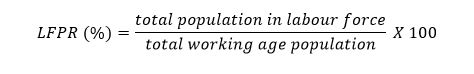 LFPR is defined as the ratio of the labour force to the working age population (15 years and over), expressed as percentage: