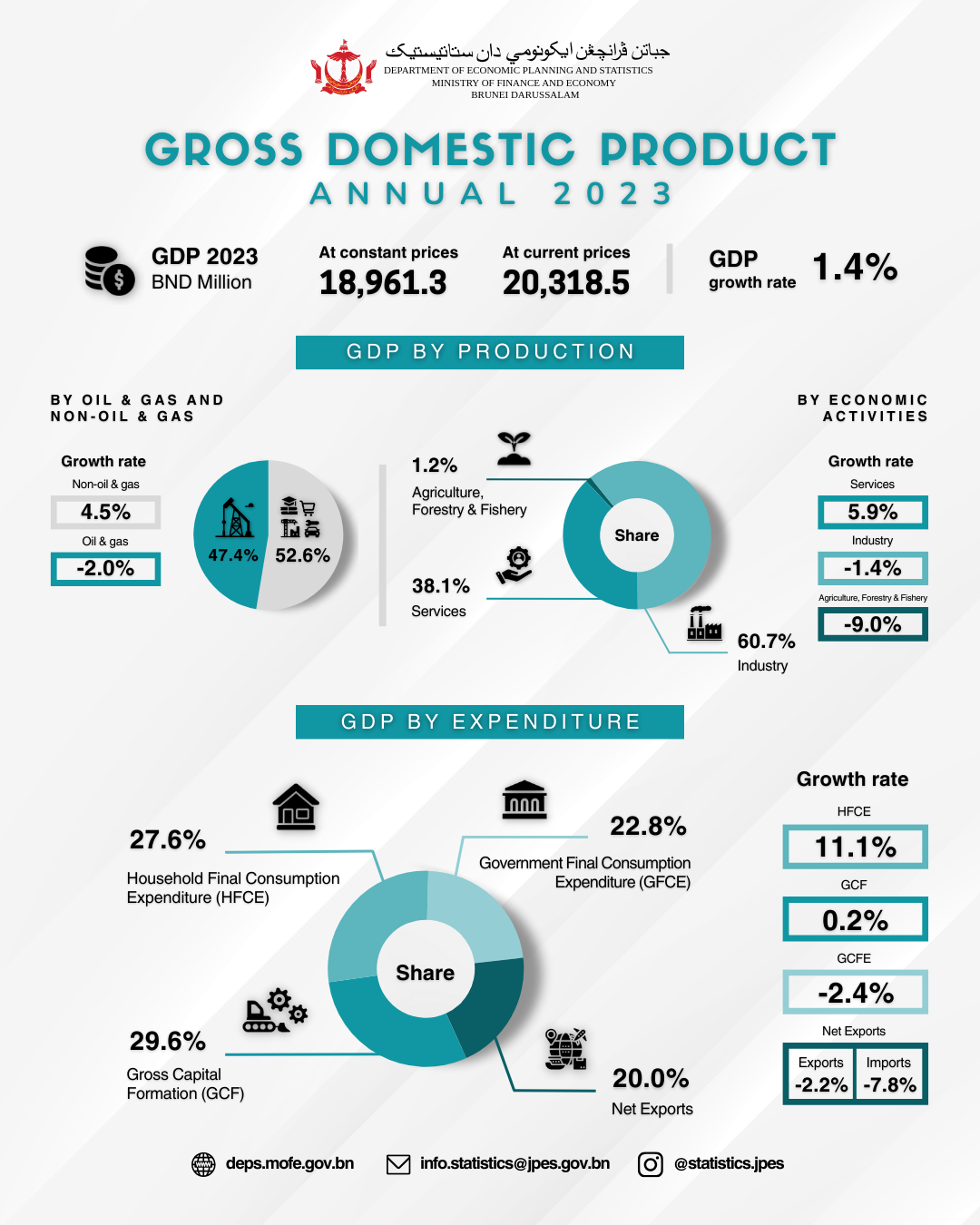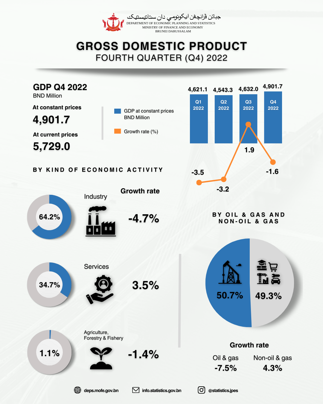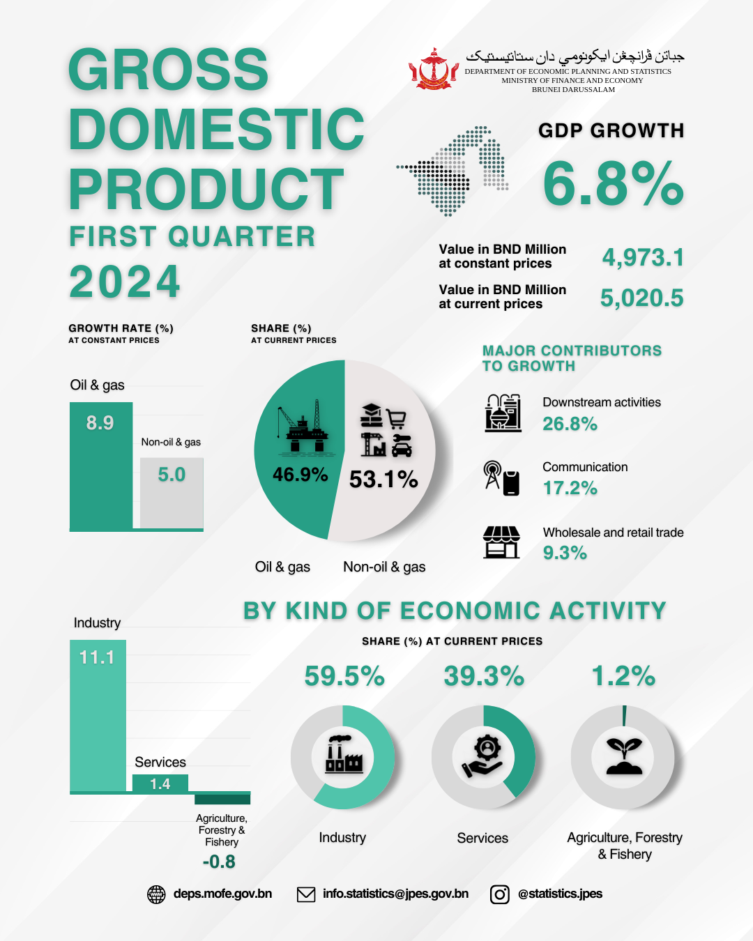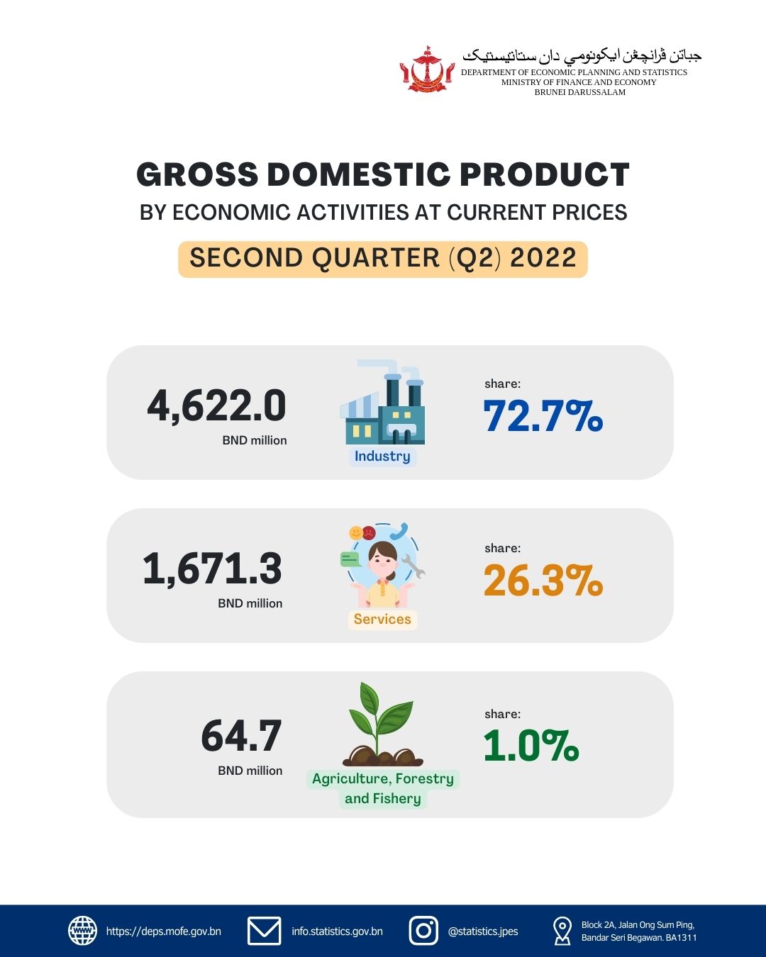 GDP at current prices (measured at prevailing prices during the period) was estimated at BND4.8 billion in Q3 2025, compared to BND5.0 billion in Q3 2024.