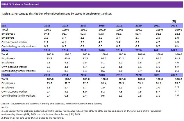 Status in employment refers to the position of the employed person at his/her place of work with regard to the employment characteristics.